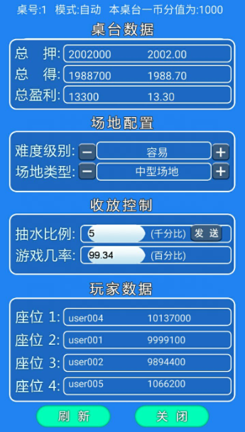 在控制程序中,不管是难度级别(捕鱼成功的概率)还是抽水比率,都可以进行控制。